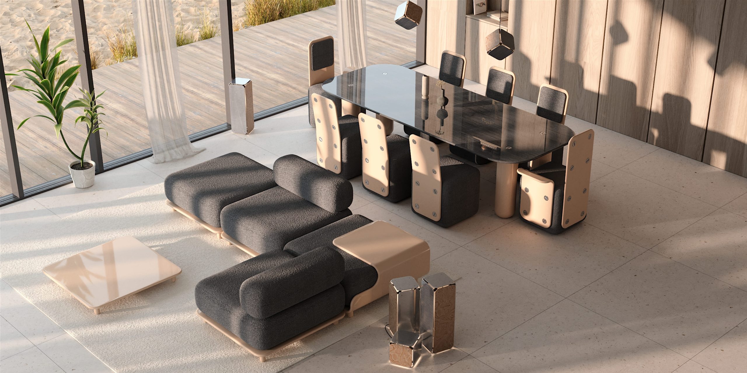 Balloon is a low-slung, welcoming, and comfortable furniture, with a design based on childhood memories, that invites users to leave the world behind and relax fully.
